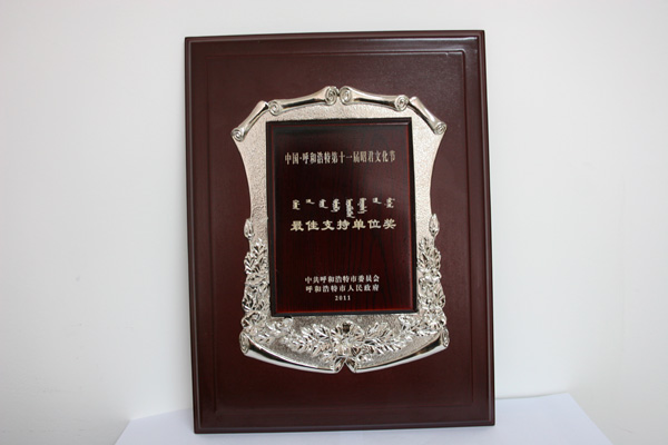 中國(guó)·呼和浩特第十一屆昭君文化節(jié)最佳支持單位獎(jiǎng)