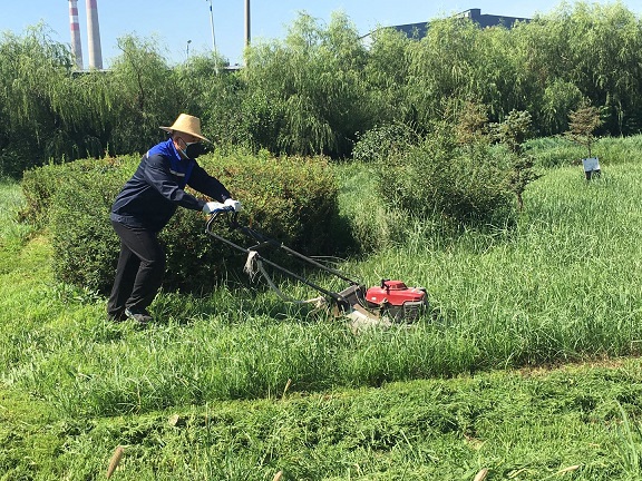 在除草過程中,大家不怕臟不怕累,默契配合,手持工具,將園區(qū)內(nèi)草坪、綠化帶雜草進行了集中清理。盡管已立秋,但太陽的威力絲毫未減。除草過程中,大家的衣服很快就被汗水浸濕,但大家沒有退縮,直到雜草被清除干凈,整個園區(qū)的雜草被徹底清除干凈,才帶著滿身汗水和喜悅的笑容離開。