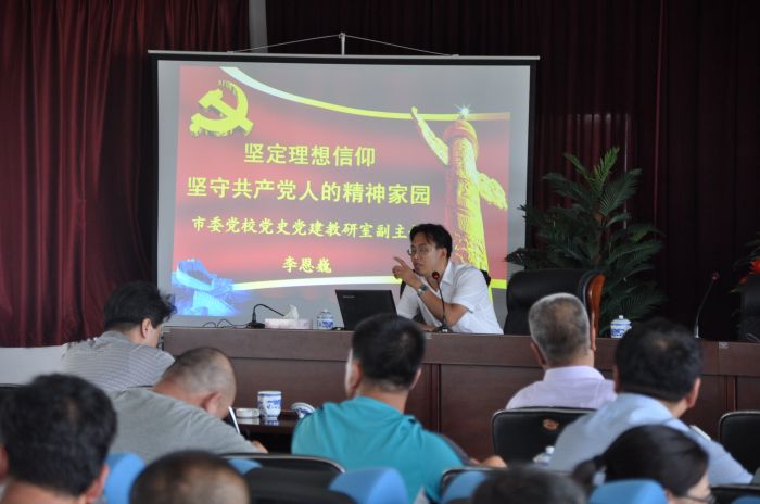 2015年7月8日下午,在金橋分公司五樓會議室,城發(fā)公司黨委邀請了呼市黨校黨史黨建教研室副主任李恩巍副教授,進(jìn)行了題為《堅定理想信仰堅守共產(chǎn)黨人的精神家園》的理論講座,城發(fā)公司全體黨員、預(yù)備黨員、重點(diǎn)培養(yǎng)對象、積極分子共計200多人參加了學(xué)習(xí)。