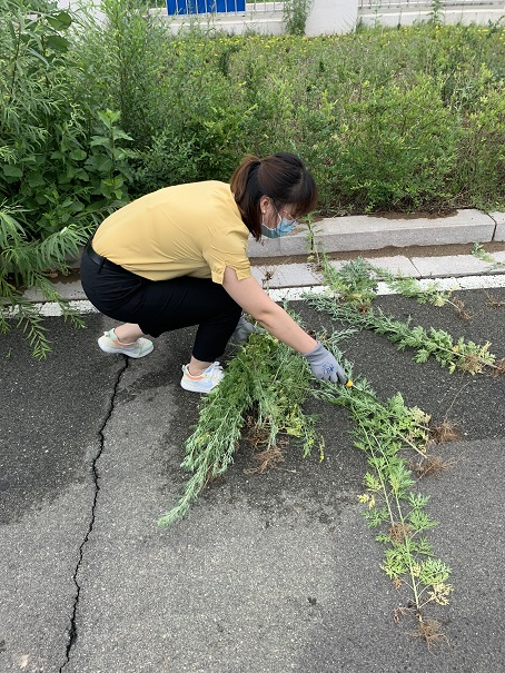 活動中,黨員干部發(fā)揮先鋒模范帶頭作用,他們手握剪刀、鐵鍬、摳縫刀等勞動工具,或是剪、或是鏟、或是拔,揮汗如雨,體現(xiàn)了黨員干部“辦實事”的工作作風。全體職工群眾以黨員干部為榜樣,認認真真學習辨別黃花蒿、沙蒿、大籽蒿、艾蒿、豬毛蒿、冷蒿等16種蒿屬植物,仔仔細細的清理所有蒿草。